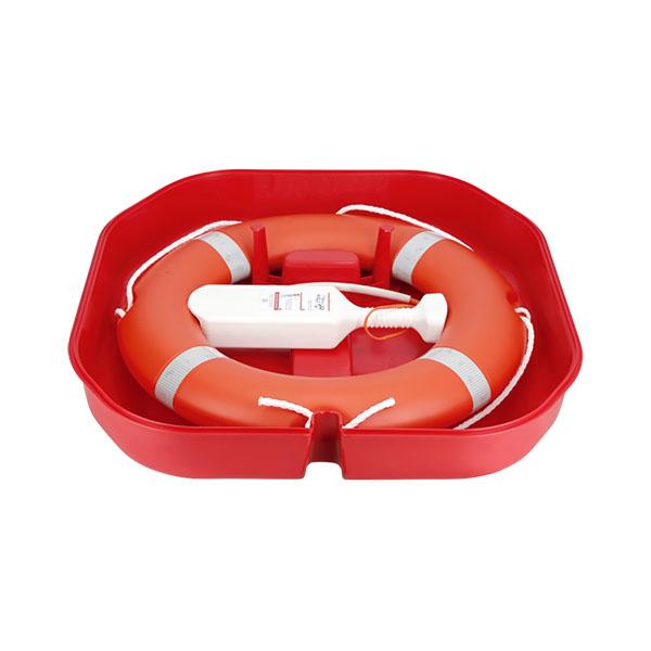 Deze reddingsboeikast is zowel te gebruiken voor reddingsboeien van 60 als 75 cm groot. Daarnaast is er nog ruimte voor 30 meter lange reddingslijn.