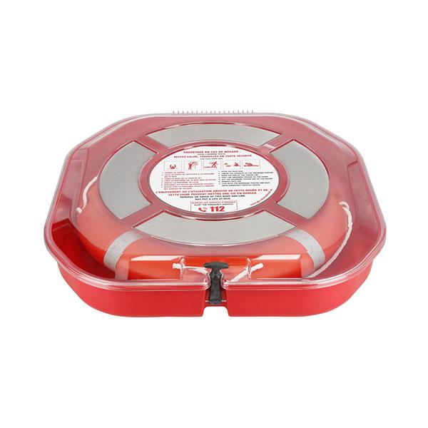 Deze reddingsboeikast is zowel te gebruiken voor reddingsboeien van 60 als 75 cm groot. Daarnaast is er nog ruimte voor 30 meter lange reddingslijn.