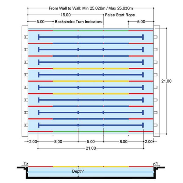 Indeling wedstrijdbad en kleuren wedstrijdlijnen